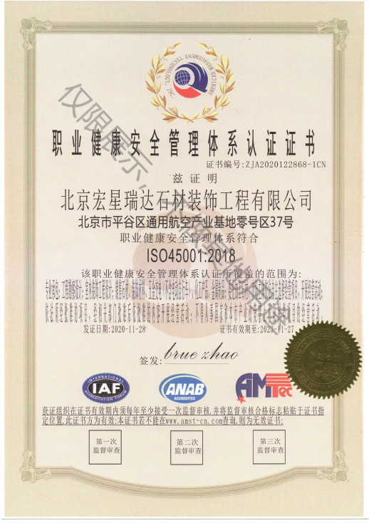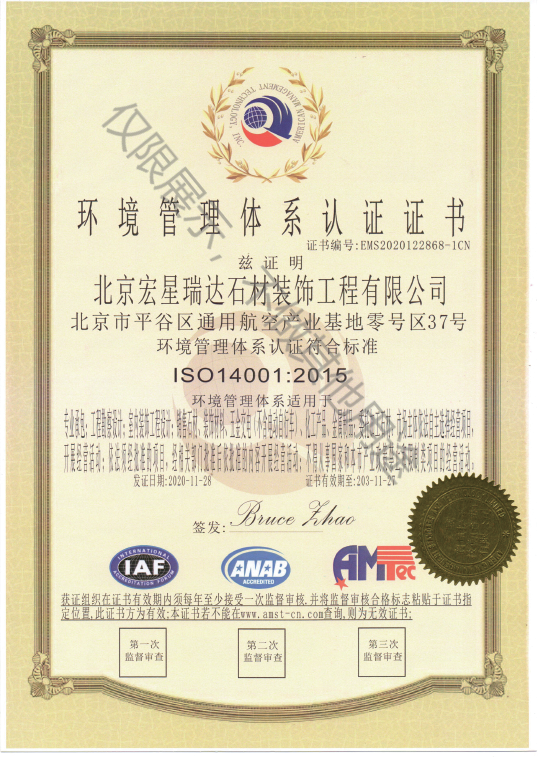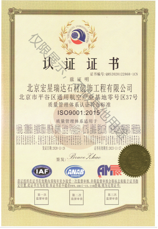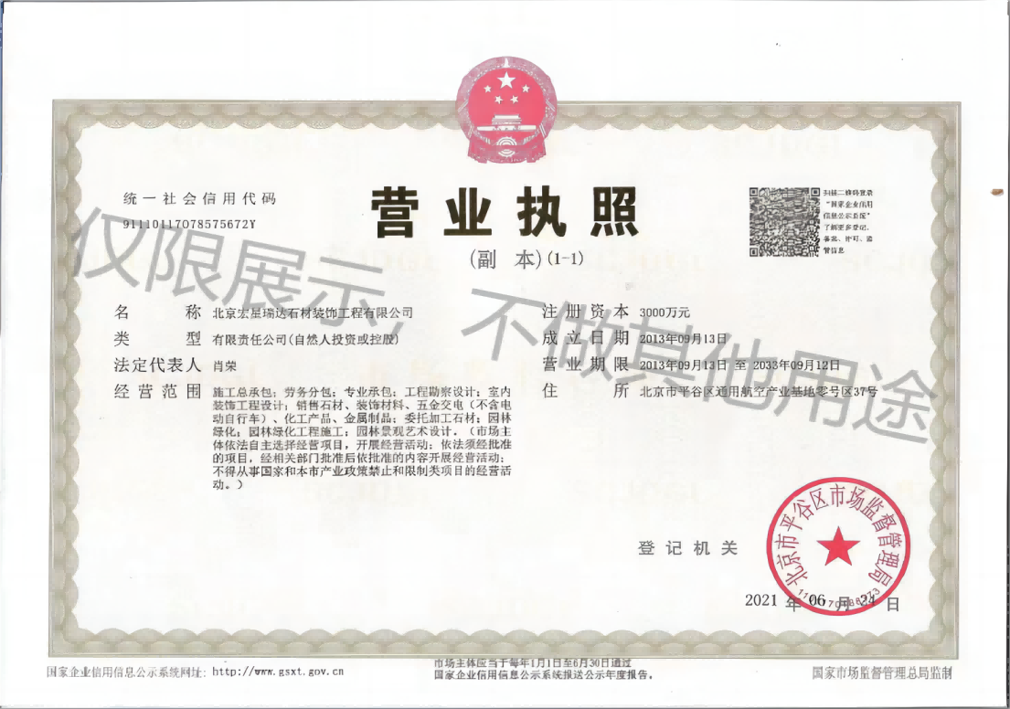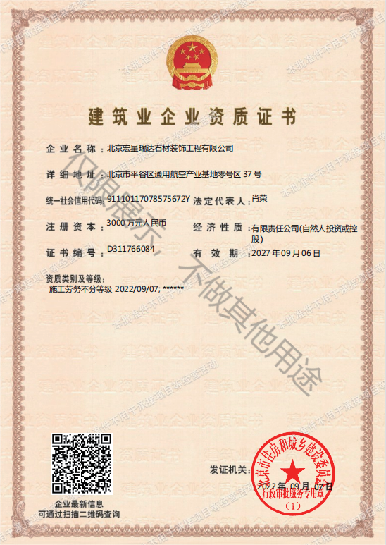 北京宏星瑞达石材装饰工程有限公司成立于2013年,注册资本3000万,经过多年的积累,已发展成为一家集石材加工供应、园林绿化、立体绿化、室内外装饰、建筑幕墙为主营业务的综合性建筑企业。 公司注重人才的培养,软硬件设施齐全,配套有石材工厂及多个苗木基地,完善了供应体系,为业主服务提供了有力保障。公司承接国内多个大型优质项目:北京城市副中心幕墙、融创武汉壹号院、融创桃花源幕墙及景观、融创临江府景观、融创公园大观景观、融创1890景观、融创西安海逸长洲景观、融创西安曲江印项目、武汉大华景绣前程景观、成都银泰中心华尔道夫酒店、长沙华远中心、长沙梅溪湖酒店等项目。所做工程均达国家优良标准。 公司将以自主创新为灵魂,力争每一个项目成为精品。宏星人,用心装点世界!真诚期盼与各界朋友携手合作,共创辉煌明天。 【更多介绍】
